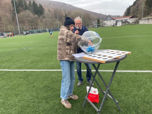 Die vier Lose zog der verletzte Spieler der Fellbergkicker Niklas Hillemann.